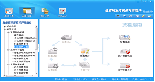 1.插入税控盘,打开开票系统,点击“发票管理/发票领购管理/网络发票分发”