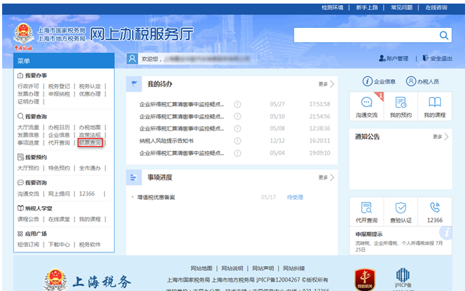 登录网上办税服务厅,点击右侧“领票查询”进入查询页面。