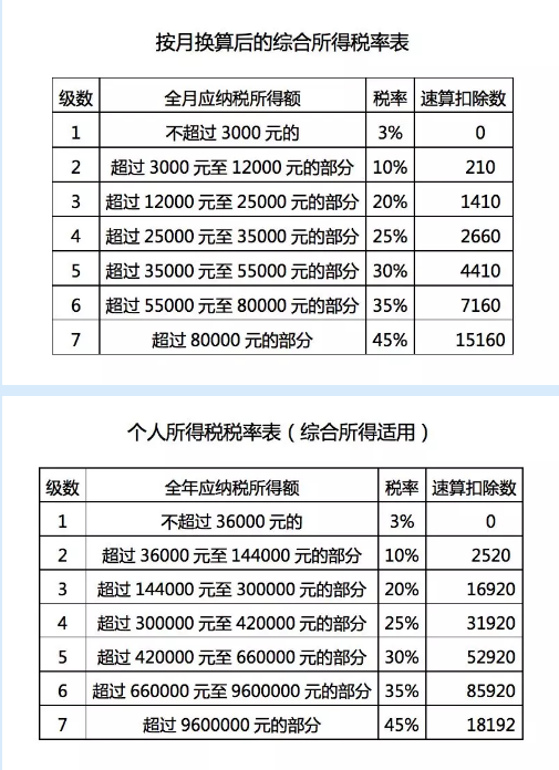 Step2:查找税率,参照《按月换算后的综合所得税率表》,3500元适用的税率为10%,速算扣除数为210元。