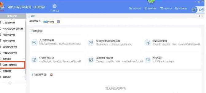 第二步、在左侧菜单栏下方点击退付手续费核对。