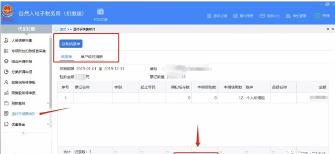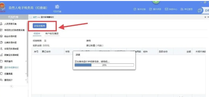 第三步、点击获取结报单,等待数据下载完成后进行核对。