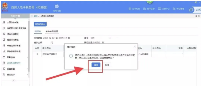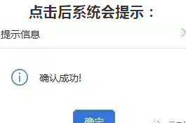 第五步、 点击后系统弹出确认信息提示,点击确定后出现确认成功提示框即为提交完成。
