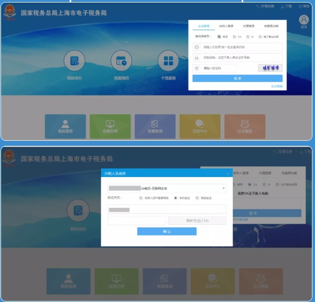 2完成协卡助手电子营业执照登录后,以税号或CA方式登录电子税务局,系统会自动跳转至办税员验证界面,实名认证通过的办税员可自行选择任意一种验证方式进行登录验证,验证通过后,即可完成电子税务局登录。