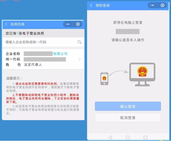 5根据系统,提示使用电子营业执照APP或小程序扫码授权。